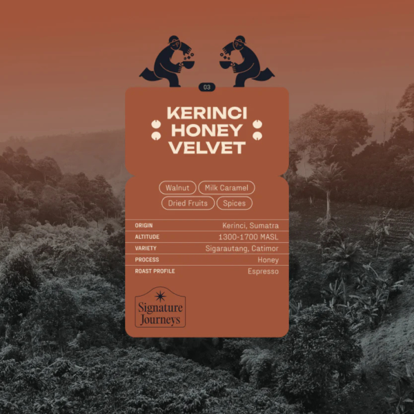 Indulge in the velvety embrace of Kerinci Honey Velvet, a full-bodied espresso coffee born in the misty mountains and green valleys of Sumatra’s coffee heartland.